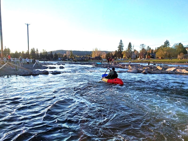 ← Previous image Next image → Man Rafting Deschutes River Old Mill District Watch surfers, kayakers, and tubers experience the white water park in Bend’s Old Mill.
