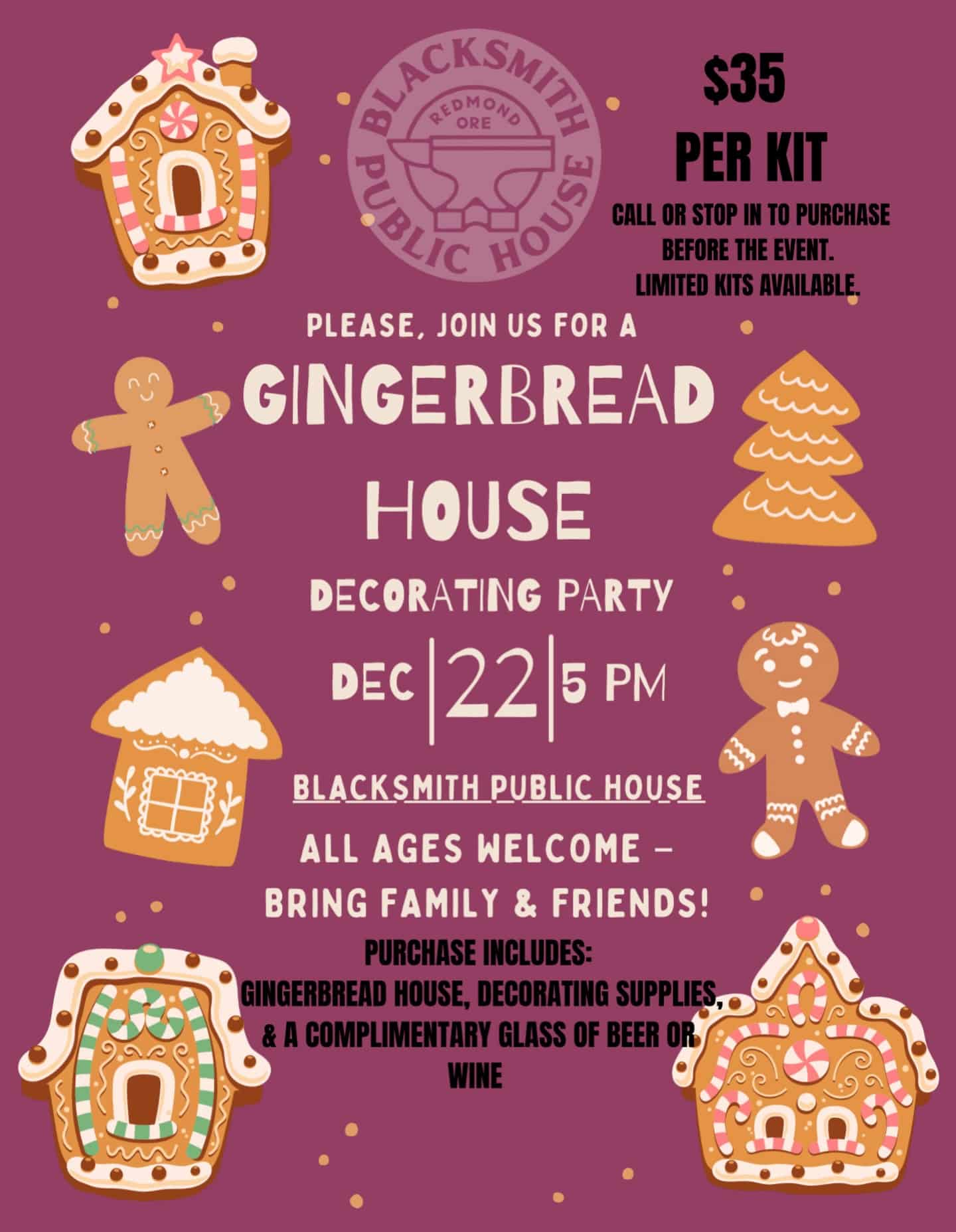 Looking to make the season feel a little more festive? We’ve got you covered with a night at the Blacksmith dedicated to decorating your very own Gingerbread house! Give us a call or stop in to purchase your $35 ticket, which includes your own gingerbread house, all the decorating supplies needed, and a complimentary glass […]