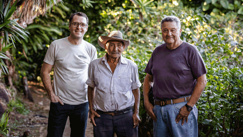 ← Previous image Next image → El Salvador Coffee Dave Beach, CEO and Founder of Backporch Coffee Roasters, with Rene Monroy and Miguel Menendez Sr., owner of Finca El Rosario, El Salvador. El Salvador Coffee