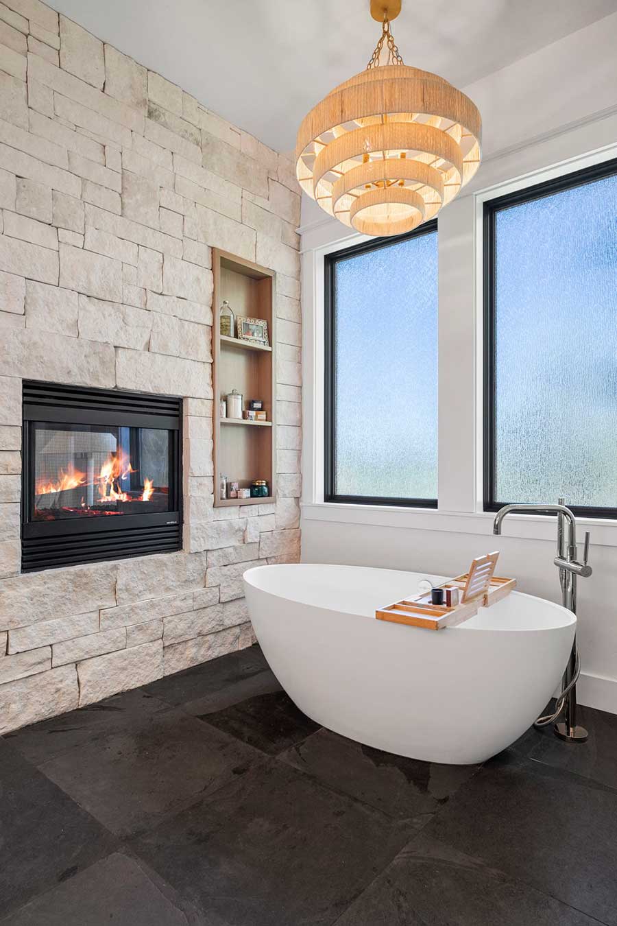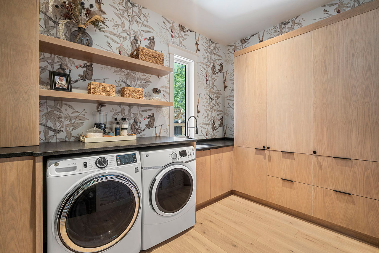 Inside, you’ll find spacious living areas framed by breathtaking woodland and mountain views. The home offers four bedrooms, including a junior primary suite and a magnificent main primary suite complete with a yoga room and a spa-like bathroom with heated floors. Enjoy the dedicated office, a scullery, a wine room, and two laundry rooms.