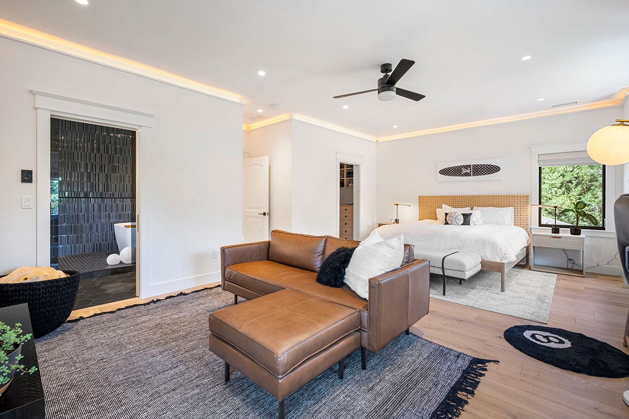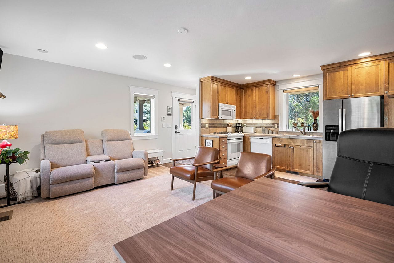 Step outside to a private, 0.65-acre lot shaded by mature trees. The outdoor space is an entertainer’s dream, featuring a gas-assist wood-burning fireplace, a hot tub, and two two-car garages for plenty of storage. A separate 600-square-foot, one-bedroom ADU provides the perfect space for guests or a high-end rental.