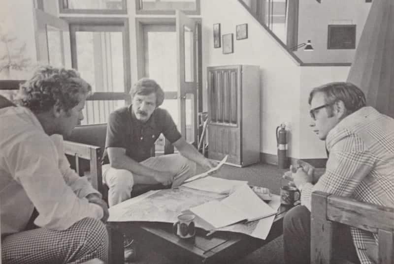 Bill Smith, far right, with Mike Hollern, left, and Bob Lockrem during the early development stages of Black Butte Ranch. The resort was a first for the mill’s spinoff, Brooks Resources, and one of Smith’s first initiatives for the evolving company.