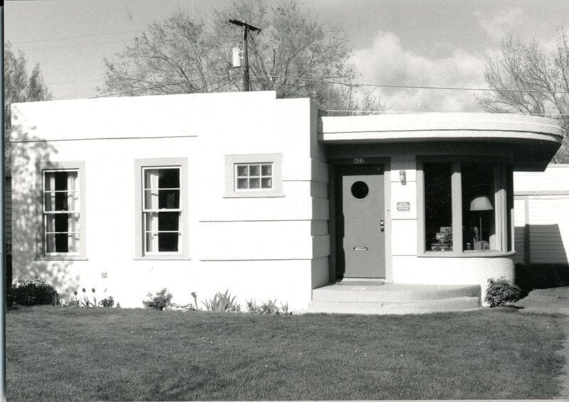 Designed by the Portland firm of Roald and Schneider, the medical/dental building opened in 1942 and served as Redmond’s first modern hospital until 1952. According to Commission chair Judy Fessler, Patrick’s (as it is sometimes called) is among Redmond’s few remaining commercial examples of Art Moderne design, a style that evolved out of the high-style Art Deco period of the 1920s and 1930s. Also known as Streamline Moderne, the style reflected austere economic times. Decorative flourishes and sharp angles were replaced with aerodynamic curves. Decorative wood and stone were replaced by cement and glass, with smooth stucco surfaces painted in light earth tones.
