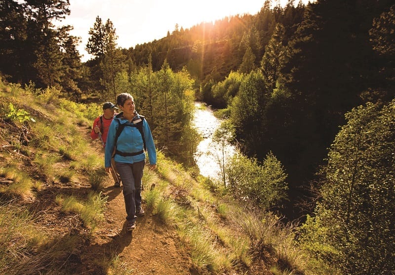 ← Previous image Hikers at sunset at Whychus Canyon Preserve. Michelle Bergeron and Pat Gaunt. Hikers at sunset at Whychus Canyon Preserve. Photo by Tyler Roemer