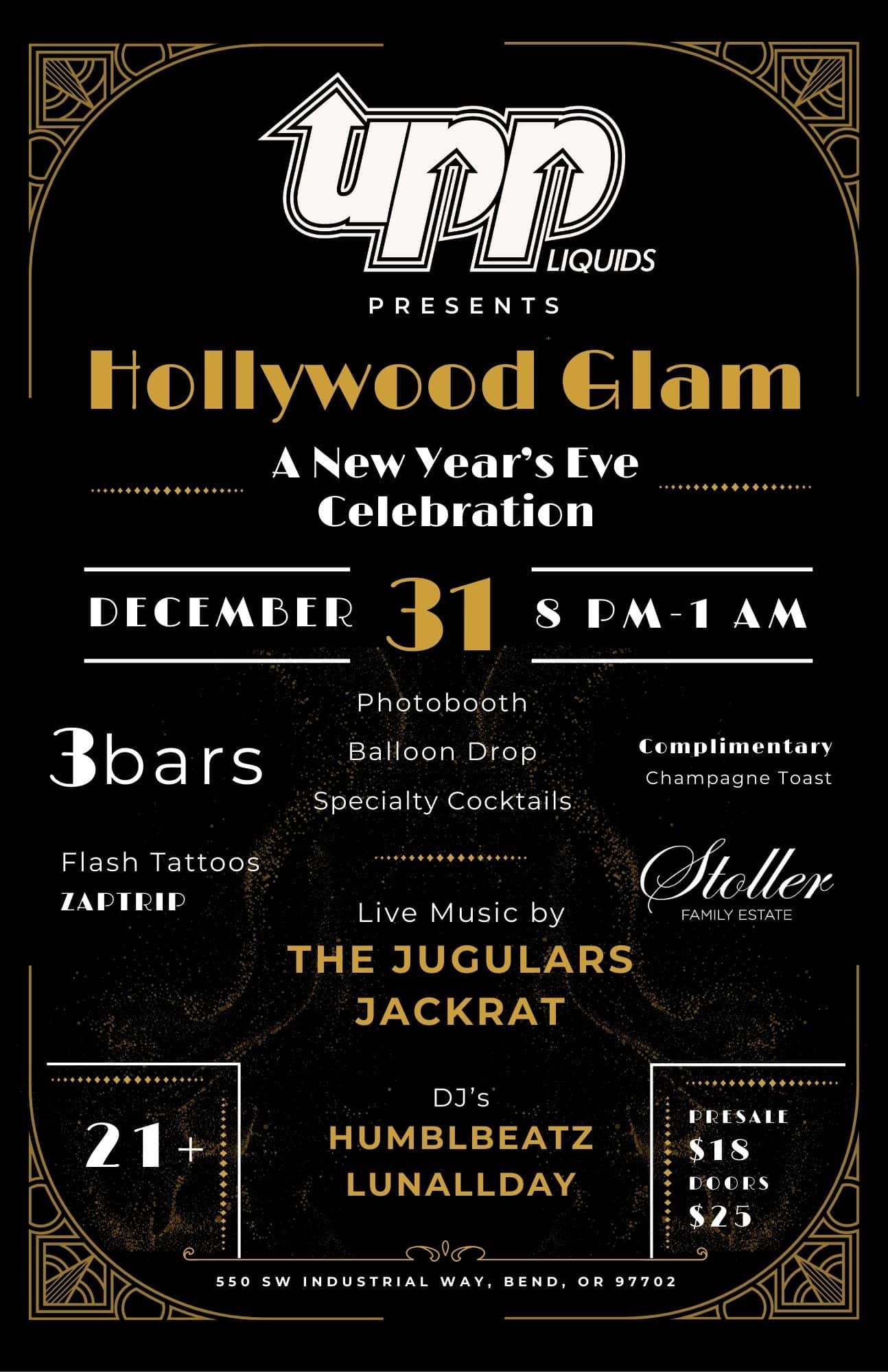 Upp Liquids 550 Sw Industrial way, Bend, OR, United StatesIt's that time of year again when UPP Liquids (formerly Immersion Brewing) throws THE BEST NEW YEAR'S PARTY IN TOWN! Dress your best and welcome in the new year with festivities including: DJs: HUMBLBEATZ LUNALLDAY LIVE MUSIC: THE JUGULARS JACKRAT ENTERTAINMENT: FLASH TATTOOS by ZAPTRIP 3 BARS WITH SPECIALTY COCKTAILS 3 ROOMS OF FESTIVITIES PHOTOBOOTH […]